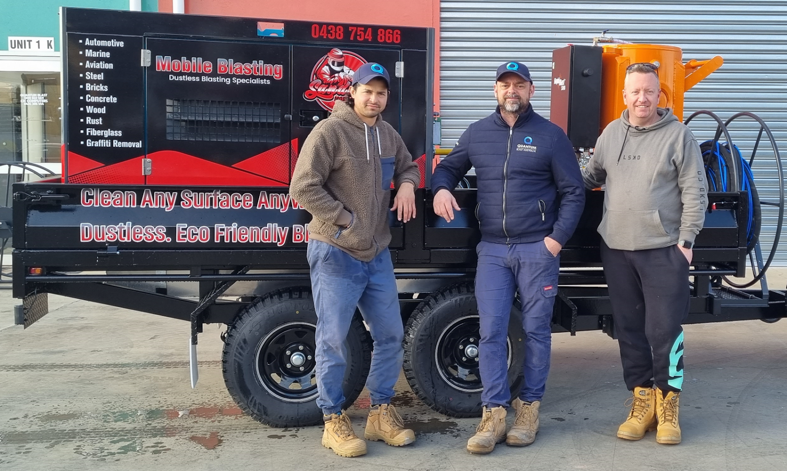 Do you know how companies always tell you they care while they flip through your billfold? That’s not us. Need something shipped immediately to some remote place? Let us know! We’ll work with you. Is something stuck in the valve in your equipment? Give us a call. We won’t ask for your card or send out “super specialists” that charge you $300 to screw in a hose. We’re here for you! We value honesty, integrity, mateship, and all the other values that we stand for in Australia. Here’s a question. Do you really believe that other companies are there for you? When you have a problem on Saturday after 5 pm, do you think they’re going to answer the phone? We will! Remember, we were blasters too. And, we don’t plan on “selling out” and making cheap products to boost our bottom line. Our hands are still cracked, and there’s no lotion in our house. Ready to experience life with a blasting company that actually cares? And, one that makes an incredible Australian product at an equally incredible price point?