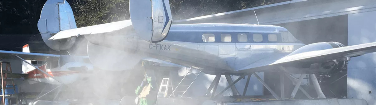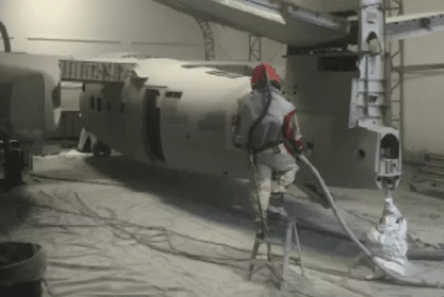 Unlike dry blasting, wet blasting does not require encapsulation and the use of blast booths as it is virtually dust free. Large parts such as the fuselage, wings and the rudder do not need to be dismantled for blasting.