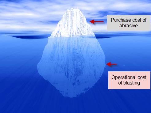 Many blasters make a decision on choosing the abrasive based on limited considerations such as the Purchase Price of Media alone, or past practice or in some cases, blindly following others in the industry. We believe that choosing the abrasive should depend on a number of different considerations. The purchase cost of the abrasive is only one of the factors involved and in determining the cost. One can say that the purchase cost of the abrasive is the tip of the iceberg that is visible. The larger part is the operational cost which is quite often not considered. In our opinion, the Right abrasive for the Right application must be considered together with calculating the Total Cost of the application Per Square Metre.