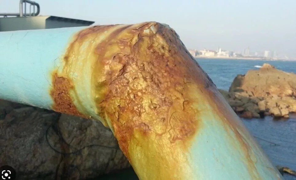 When water breaks through flaws in the coating it may eventually spreads and causes weakness in the structure through Filiform corrosion.